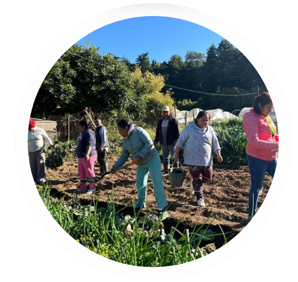 En Mucesmex, voluntarios y participantes del programa trabajan juntos en el huerto comunitario, sembrando, cuidando y cosechando alimentos. Este espacio une aprendizaje, colaboración y apoyo mutuo, creando una comunidad que crece y se fortalece día a día.